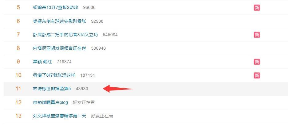 林诗栋的世界排名跌至第五也登上热搜榜,林诗栋自2025年2月拿到WTT新加坡大满贯男单冠军后升世界第一,随后他就开始了沉沦之路,他已经超过13个月没有拿到过男单冠军,他还在2025年12月底遭遇了肩袖肌腱炎伴部分撕裂伤病。
